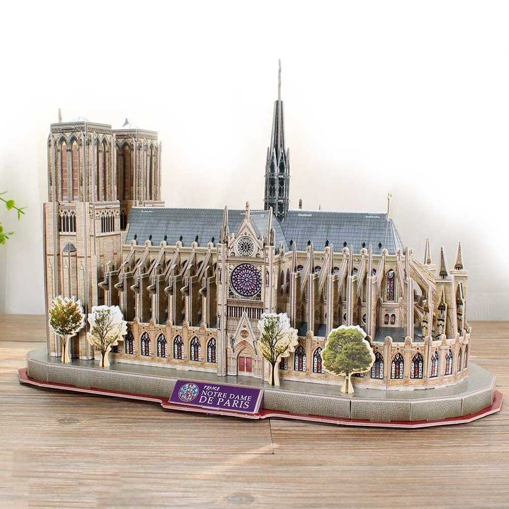 Результатом сборки трехмерного пазла от компании CubicFun станет удивительная модель символа Парижа - Собора Парижской Богоматери. Готовая модель высотой 24 см выглядит очень реалистично, ведь создатели пазла проработали до мелочей каждую деталь. Изготовлены элементы пазла из пенокартона. В наборе вы найдете 128 деталей. Самое интересное, что для сборки пазла вам не понадобится ни клей, ни какие-либо инструменты! Кроме того, в наборе вы найдете каталог с яркими фотографиями достопримечательностей Парижа.