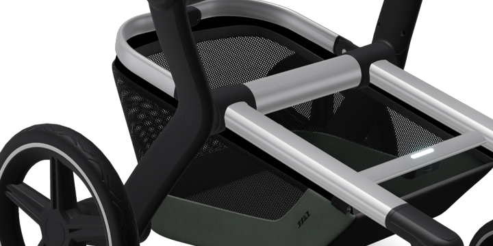 Теперь прогулку можно перевести в горизонтальное положение 1 рукой. Просто нажмите на клавишу сзади и опустите спинку. Бампер вращается на 360 градусов. Его можно отстегнуть 1 рукой с любой стороны и опустить рядом. Благодаря новому дизайну колес, коляска стала более маневренной, а ход - мягче. Корзину дополнили сетчатой вставкой, плюс она стала полностью открытой, а значит более вместительной. В нижней части шасси есть подсветка. Это две светодиодные лампочки, расположенные спереди и сзади (у корзины). Они помогут улучшить видимость в темное время суток. Плюс станут отличной альтернативой светоотражателям. В Day3 такого нет.