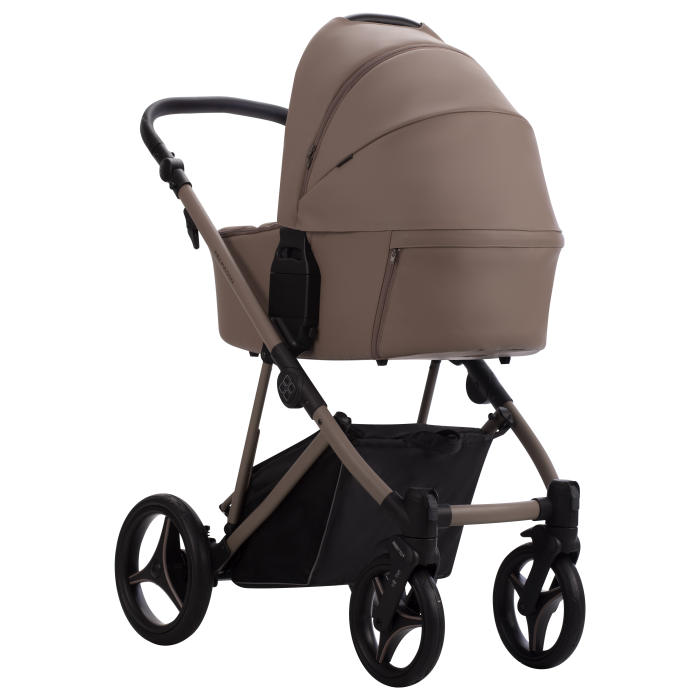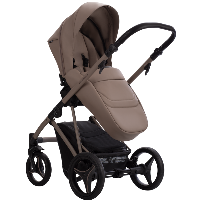 Рама коляски Pelpasso PRO изготовлена из легкого алюминия окрашенного в современный оттенок CHOCO и KASHMIR, они отлично подчёркивают основной цвет модели. Системы амортизации SAS (Shock Absorbment System) и DMS (Wheel Position Memory System) обеспечивает плавный и комфортный ход даже по неровной местности. Рама оснащена амортизаторами с двумя режимами жёсткости. Колеса Flexy Wheels не требуют обслуживания, устойчивы к повреждениям и отлично работают как в городе, так и на более сложных поверхностях. Вместительная корзина для покупок оснащена своей сумкой, которая облегчает организацию и быстрый доступ к необходимым вещам. В комплект коляски Pelpasso входит сумка для ухода и ряд аксессуаров, таких как: дождевик, москитная сетка, держатель для телефона и подстаканник.