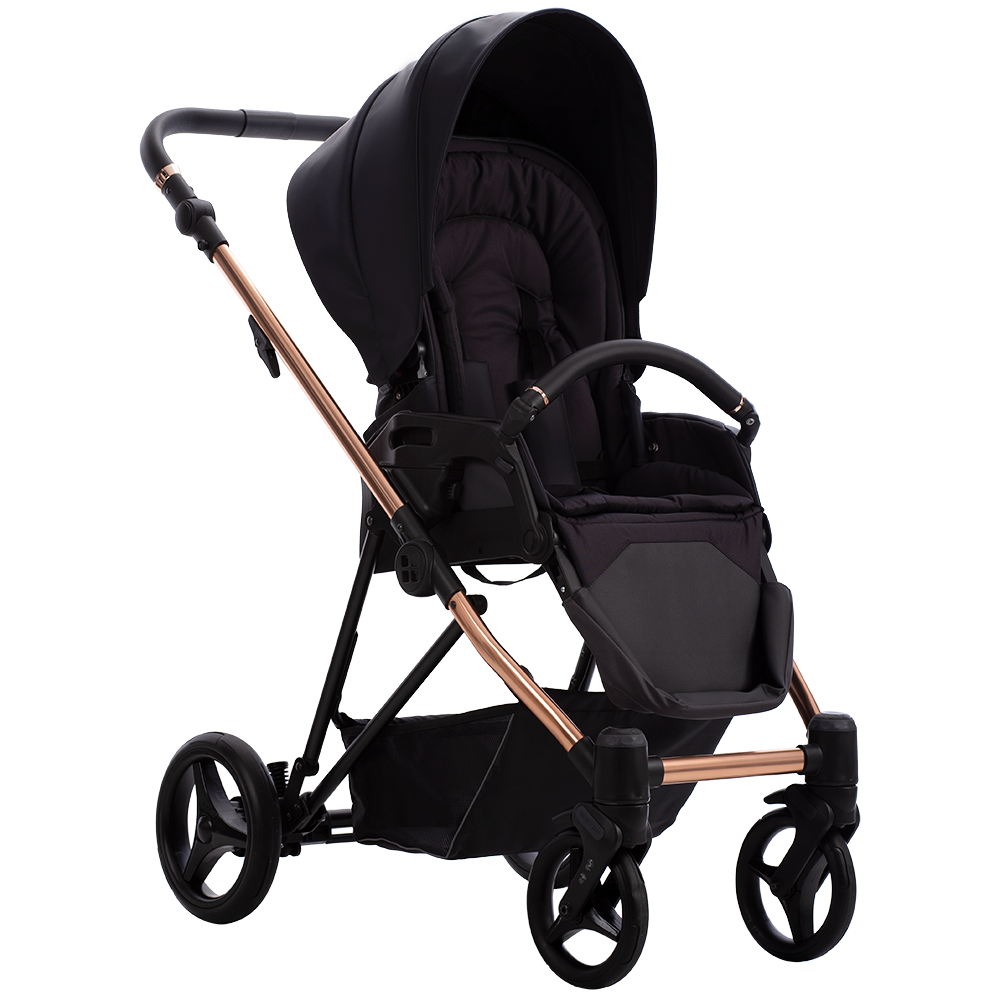 Коляска Yoddi сочетает в себе удивительный дизайн, превосходную амортизацию и высочайшее качество. Блестящая рама медного цвета выглядит непревзойденной и изящной, но при этом она легкая и надежная.