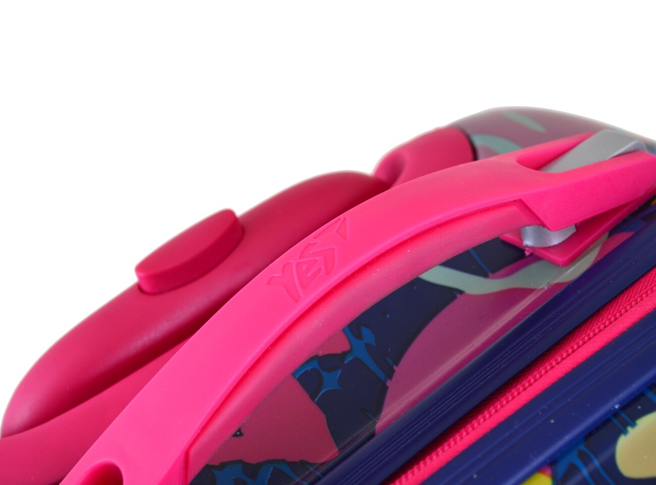 В любое путешествие - вместе с удобным чемоданом от Yes! Прочная пластиковая конструкция с двумя основными отделами на молнии и фиксирующей резинкой внутри. Все для вашего удобства в поездках. На чемодане две ручки - выдвижная с кнопкой, а также маленькая пластиковая с резиновой накладкой - для переноски в руках. Яркий необычный дизайн, а также компактные размеры позволяют использовать чемодан даже детям младшего и среднего возраста. Подарите ребенку его первый чемодан! Открывать для себя путешествия интереснее вместе!