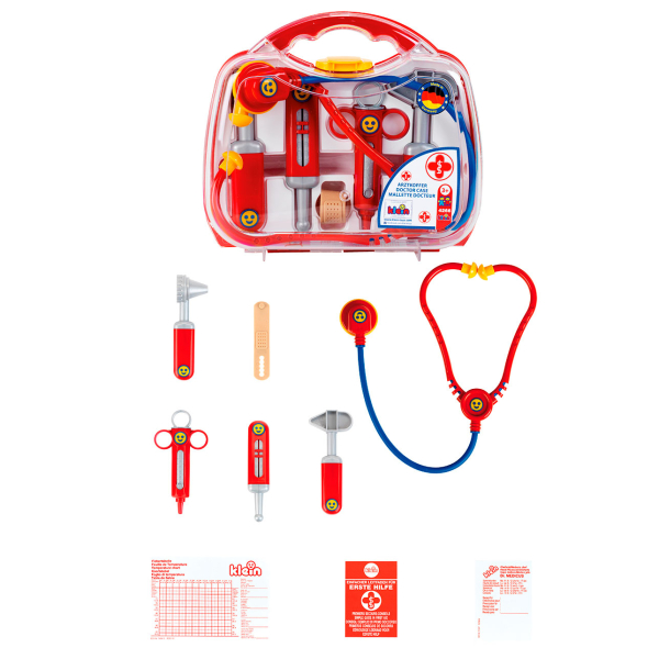 Добро пожаловать в мир веселых ролевых игр с очаровательным врачебным чемоданчиком от Klein! Этот набор – мечта каждого маленького доктора. Теперь любимые куклы и мягкие игрушки могут быть тщательно осмотрены с помощью термометра, стетоскопа, шприца, ушного зеркала и рефлекторного молоточка и мгновенно вылечены. Все инструменты идеально подходят для маленьких ручек и безопасны благодаря закругленным краям, что делает игру не только увлекательной, но и безвредной.