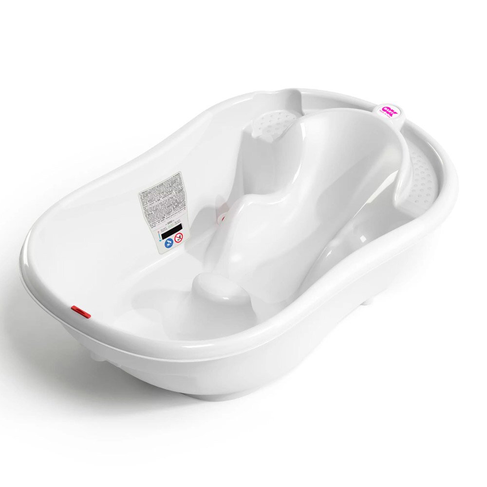 Пластиковая детская ванночка с анатомической горкой для удобного расположения младенца во время купания. Оснащена термодатчиком для контроля температуры воды. Имеет отдел для губки и мыла, сливное отверстие. Габариты ванночки - 26 x 53 x 93 см. Рекомендована детям от рождения до 12 месяцев.