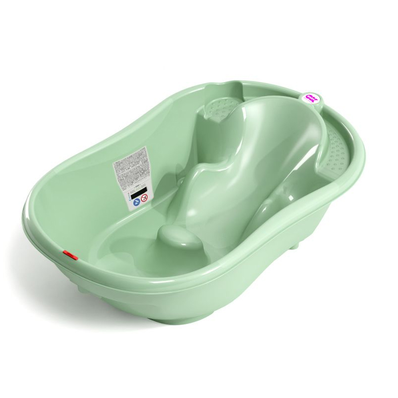 Пластиковая детская ванночка с анатомической горкой для удобного расположения младенца во время купания. Оснащена термодатчиком для контроля температуры воды. Имеет отдел для губки и мыла, сливное отверстие. Габариты ванночки - 26 x 53 x 93 см. Рекомендована детям от рождения до 12 месяцев.