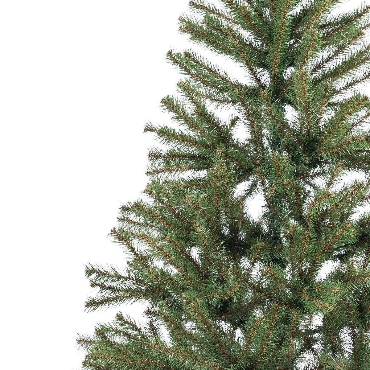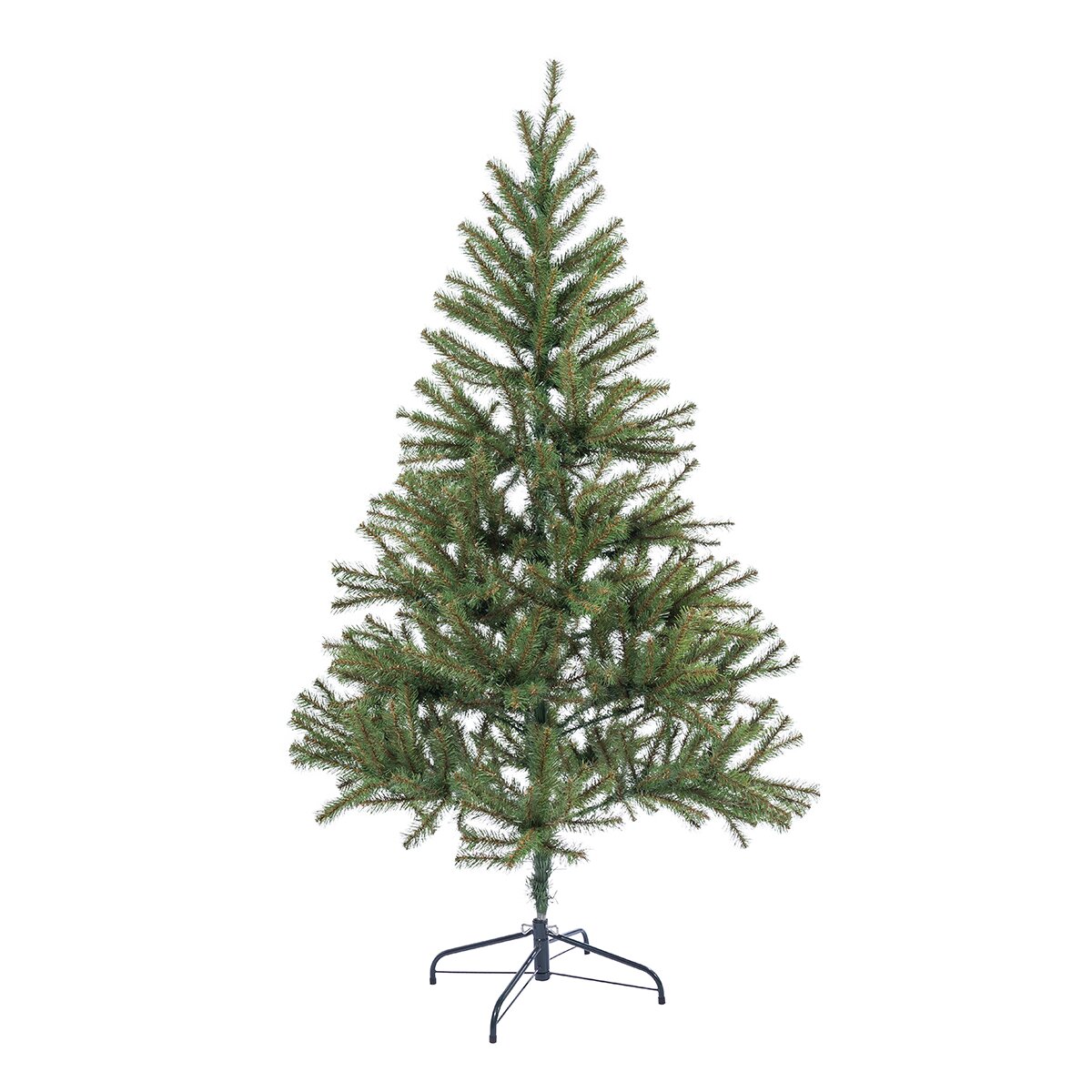Материал: ПВХ пленка шириной 6 см; металл; проволока. Высота: 180 см. Диаметр нижнего ряда: 116 см. Ствол ели состоит из двух частей. Подставка ели — это металлическая крестовина с болтами, закрепляющими ствол.