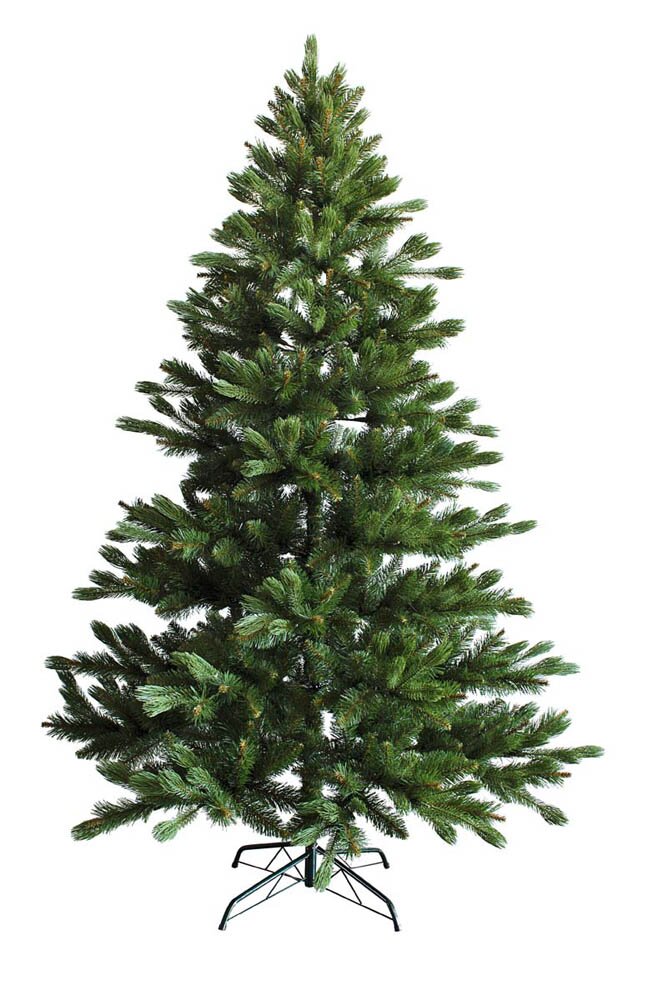 Материал: ПВХ пленка шириной 8,5 см; литые ветки; металл; проволока. Высота: 270 см. Диаметр нижнего ряда: 156 см. Ствол ели состоит из трех частей + верхушка. Подставка ели — это металлическая крестовина с болтами, закрепляющими ствол. Габариты: 2,70 м.