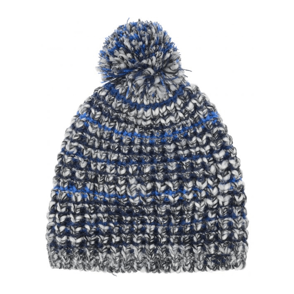 Прилегание шапки к голове обеспечивает плотная вязка. Головной убор украшает меланжевый рисунок и помпон.