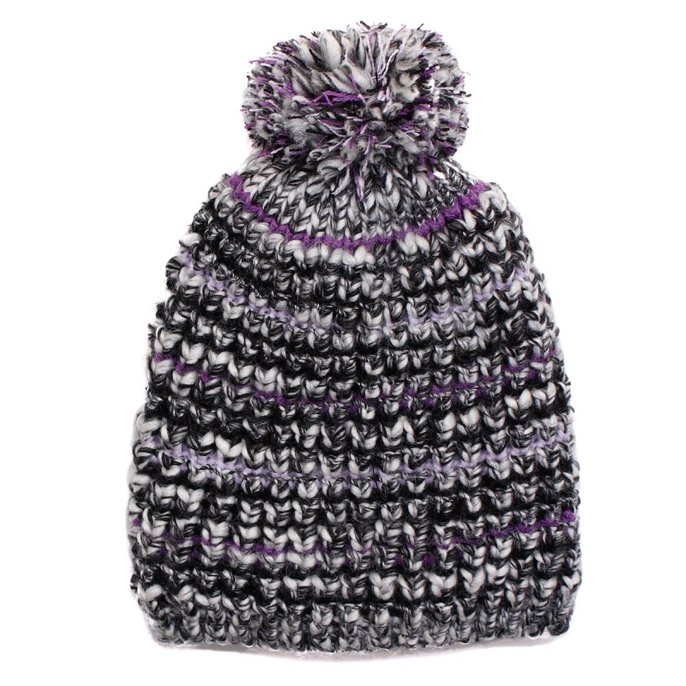 Прилегание шапки к голове обеспечивает плотная вязка. Головной убор украшает меланжевый рисунок и помпон.
