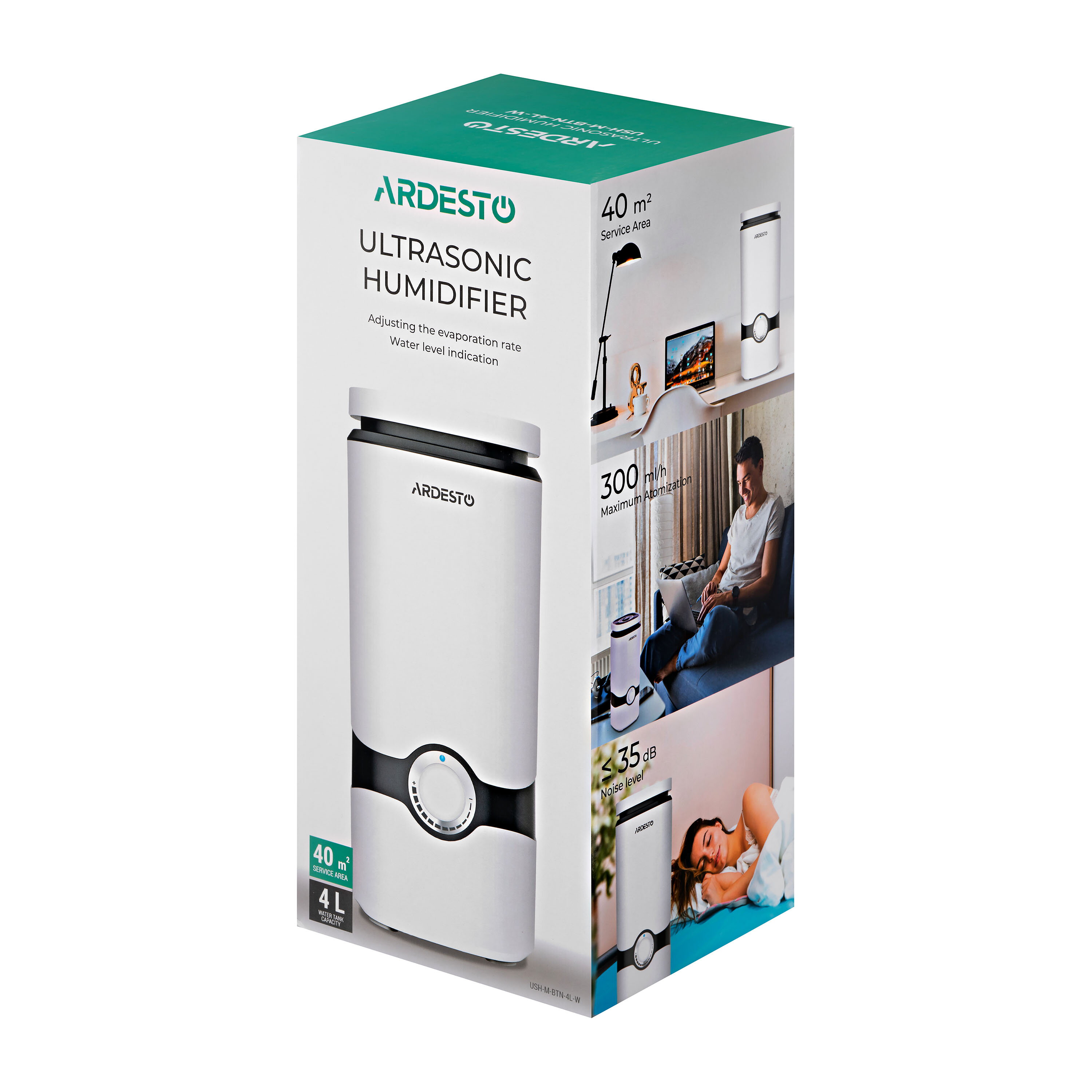 Ультразвуковой увлажнитель воздуха с пультом ДУ, автоматической регулировкой интенсивности испарения, бесшумный в работе, с резервуаром для жидкости на 4 литра, а также эргономичной конструкцией с верхним заливом воды.