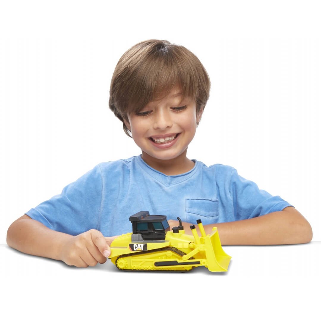 Знакомьте ребенка с миром транспорта! Машинка-бульдозер создана для детей от 3-х лет. Она изготовлена из устойчивого к повреждениям, безопасного желтого пластика. Работает от 2 батареек типа ААА, которые входят в комплект. Имеет большие колеса со свободным ходом и рельефными протекторами. Движение ковша сопровождают семь различных звуковых сигналов. Длина игрушечной спецтехники составляет 15 см. Машинка отличается ярким дизайном, высокой степенью детализации. Пусть ребенок представляет себя водителем крутого бульдозера, работающего на стройплощадке. Он может отгребать песок, расчищать дорогу. Игра с машинками развивает фантазию, внимание, пространственную ориентацию, мелкую моторику. Артикул 800794.