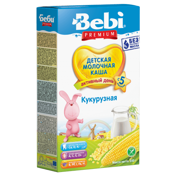 Молочная каша Bebi Premium Кукурузная предназначена для детей в возрасте от 5 месяцев.