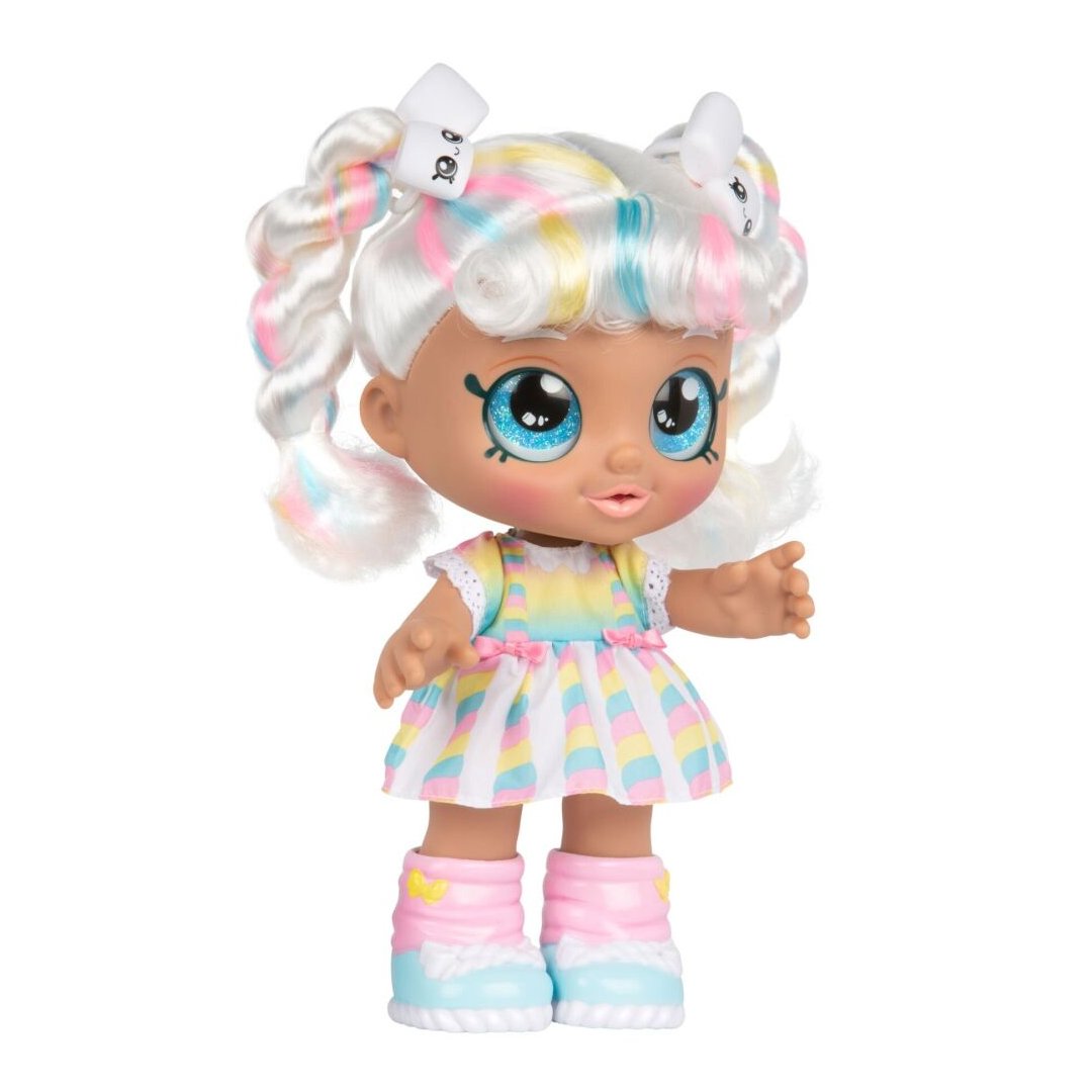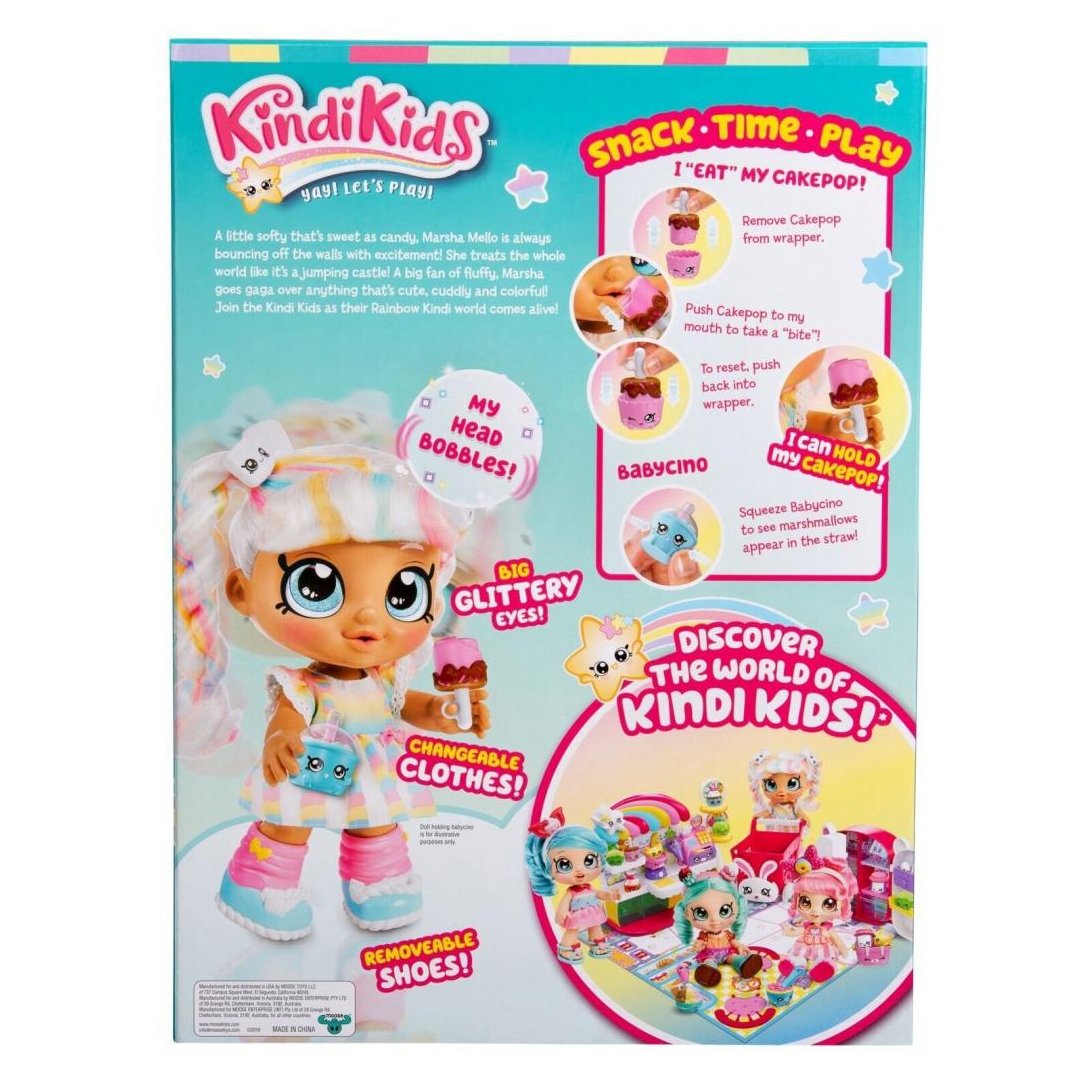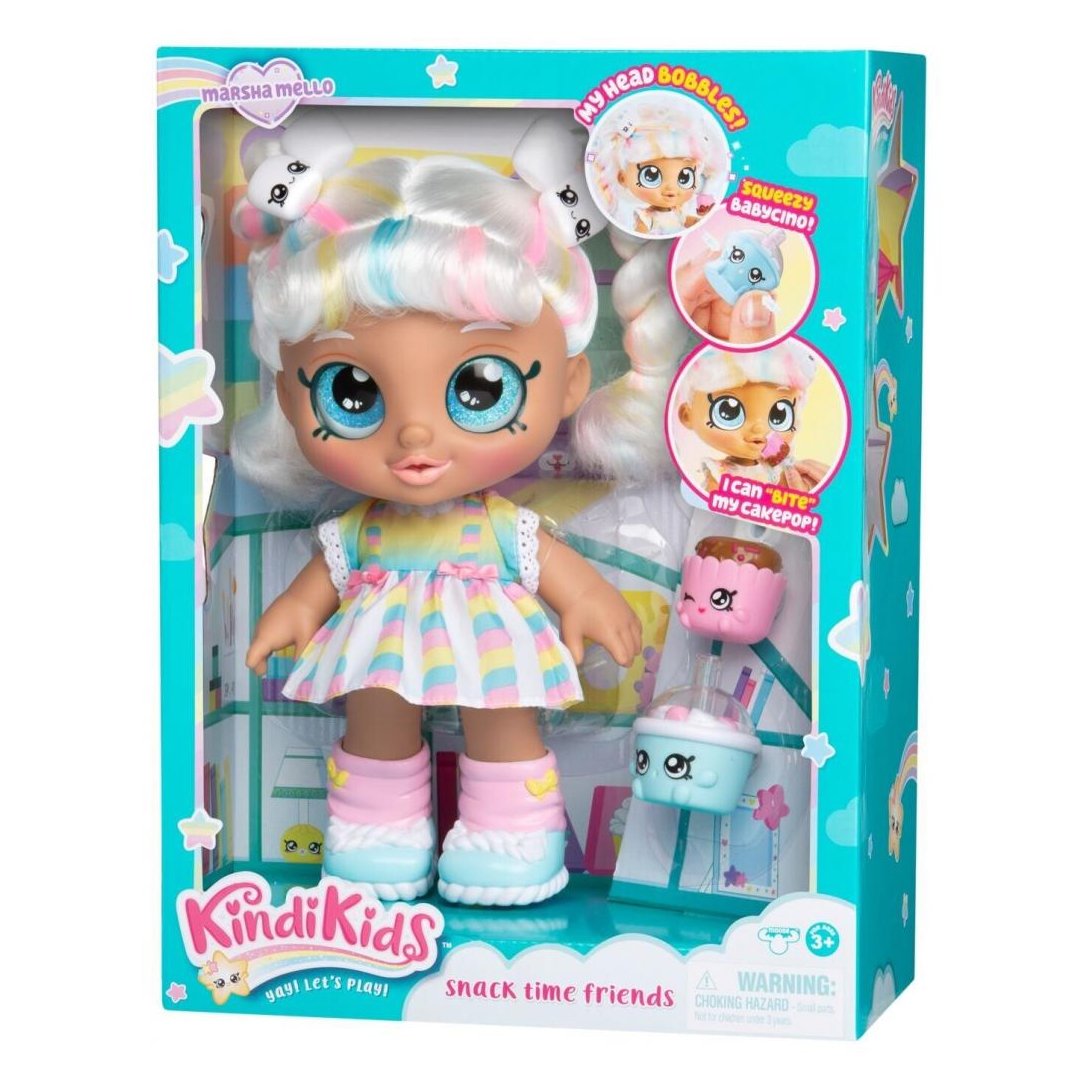 Время угощать подружку Маршу Мелло! Кукла создана для дошкольников (от 3-х лет). В комплекте с ней идут аксессуары - кейкпоп и бебичино. Кукла высотой 25 см имеет приятные на ощупь белоснежные волосы с цветными прядями, огромные мерцающие голубые глаза с блестками. Весь ее образ - это напоминание о нежной зефирке. Кукла качает головой, имеет подвижные конечности и способна удерживать предметы. Замечательной механикой она обязана особой продуманной конструкции. Для этой интерактивной игрушки не нужны батарейки! Марша хочет, чтобы ее напоили вкусным шоколадом. Игра с куклой Кинди Кидс развивает внимание, фантазию, мелкую моторику. Ребенок учится заботиться, выполнять повседневные задачи. Артикул 1030.