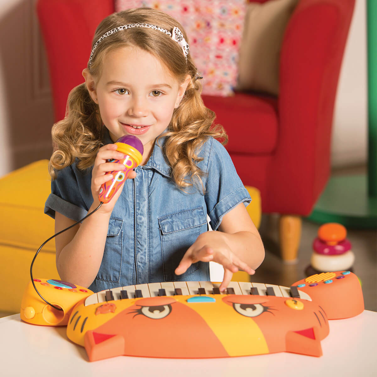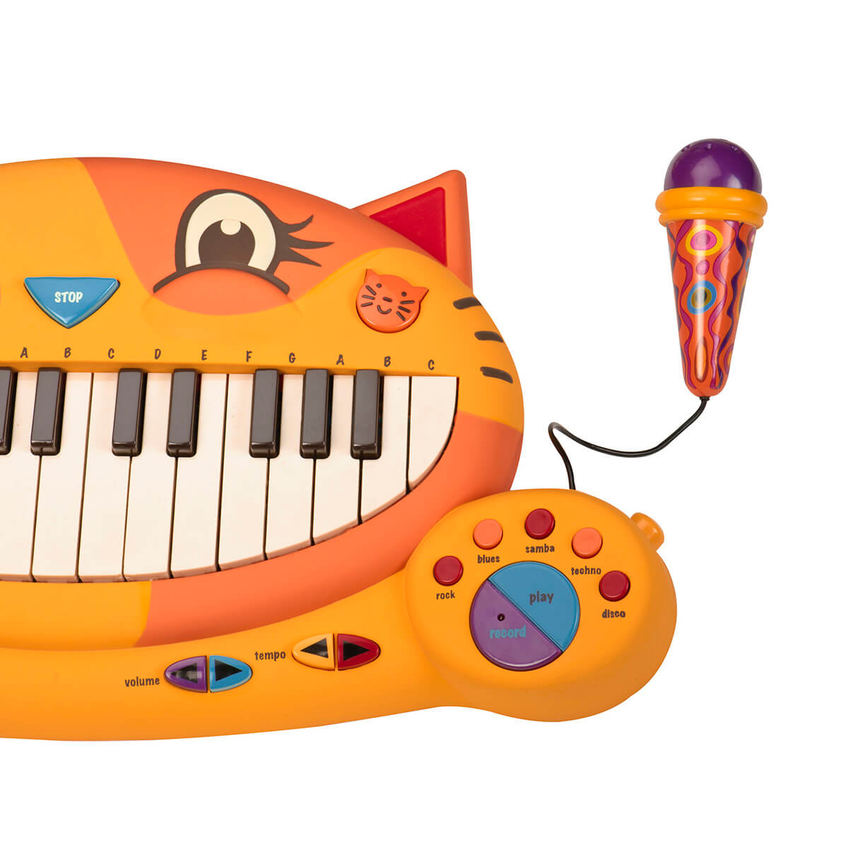 Аж 5 музыкальных инструментов в одной игрушке: банджо, орган, колокольчики, фортепиано, котофон. Есть встроенный микрофон со шнуром, что втягивается. Музыкальная игрушка издает 5 ритмов (рок, блюз, самба, техно, диско), 20 мелодий и 7 смешных кошачьих песенок. При отсутствии игры котофон мурлычет и автоматически выключается. Есть регулировка громкости и темпа, функция записи и воспроизведения. В комплекте - буклет. Котофон поможет в развитии музыкального слуха, креативности, воображения. Развивающие игрушки Battat: будь музыкальным, будь веселым, будь собой! Размер игрушки - 48 х 7 х 25,5 см. Размер упаковки - 50,8 х 12,7 х 25,4 см. Питание: 4 батарейки АА, входят в комплект. Рекомендуемый возраст - от 2 до 6 лет.