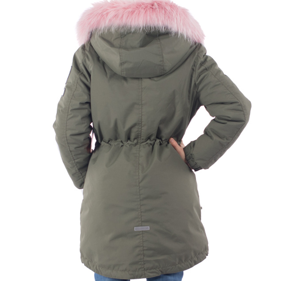 Удлиненная теплая модель для девочек 12-13 лет. Производитель - эстонская компания Lenne. Парка пошита из высокотехнологичной ткани Active, которая не пропускает влагу и ветер, и в то же время "дышит". Куртка рассчитана на температурный режим от 0 до -30 ° C. Утеплена гипоаллергенным и легким материалом Isosoft (330 г). Благодаря ему, ребенку будет комфортно и тепло во время зимней прогулки. Парка имеет глубокий утепленный съемный капюшон с искусственным мехом. Воротник-стойка полностью закрывает шею. Капюшон и манжеты застегиваются на липучки. Спереди есть два вшитых кармана с клапанами. Парка приталена кулиской, застегивается на молнию, прикрытую планкой. Есть светоотражающие элементы. Цвет парки - хаки, опушки и подкладки - розовый.