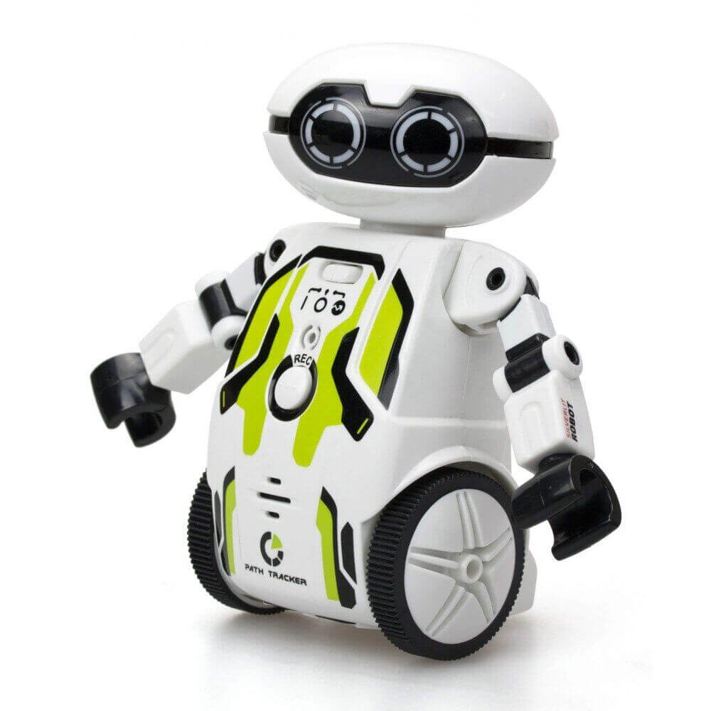 Интерактивный робот-андроид для начального программирования создан для детей от 3-х лет. Игрушка изготовлена из легких, но прочных материалов - металла и пластика. Имеет бело-зеленый корпус, колеса. Робот может двигаться по карте, в рамках круга, по нарисованному черным маркером пути. Он танцует, выдает и реагирует на звуки. Взаимодействует с приложением смартфона, сохраняет до 3-х звукозаписей. Для работы игрушка требует 2 батарейки ААА. Игра с роботом поможет ребенку развить мелкую моторику, координацию движений, коммуникативные навыки.