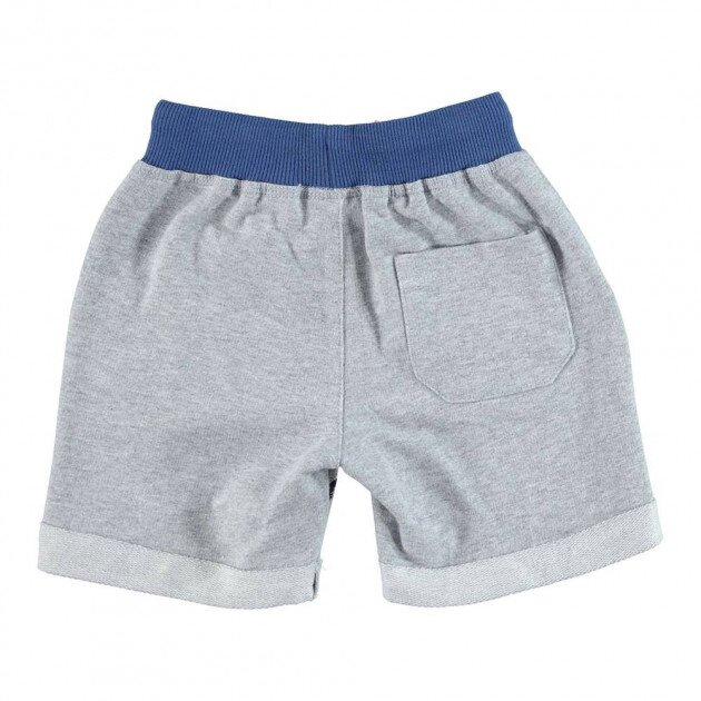 Короткие шорты из серого трикотажа для маленьких модников. Длина - выше колена. Два прорезных кармана спереди. Один накладной карман сзади. Регулируемая талия с синим поясом-резинкой и втянутым ярким оранжевым шнурком. Декорированы синей принтованной надписью. Детская одежда бренда iDO - это высокое европейское качество и лучшие модные тренды. Состав: 100% хлопок.
