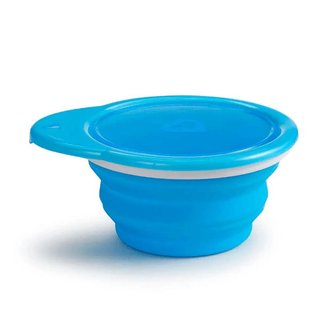 Нетоксичная силиконовая тарелка Munchkin Go Bowl в действии лучший вариант для веселого и быстрого обеда, дома или в пути. Эта эргономичная тарелка без особых усилий расширяется из плоского диска в глубокую чашу. После использования легко складывается, чтобы поместится в любой переполненный ящик или шкаф.