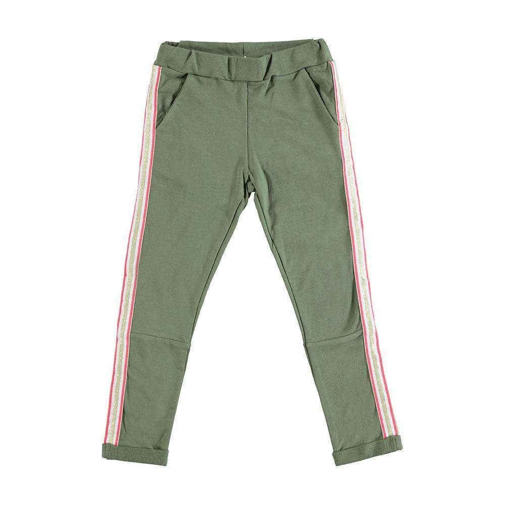 Трикотажные штаны с заниженной талией из стретч-хлопкового флиса. Боковые полосы украшены люрексом. В брюках на талии мягкая эластичная резинка. Снизу манжеты с отворотами. На коленях дополнительные строчки. По бокам прорезные карманы. Очень универсальная и стильная модель. Состав: 95% хлопок, 5% еластан. Цвет: бутылочно-зеленый.