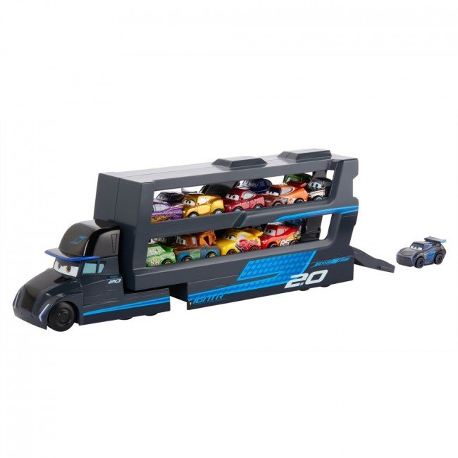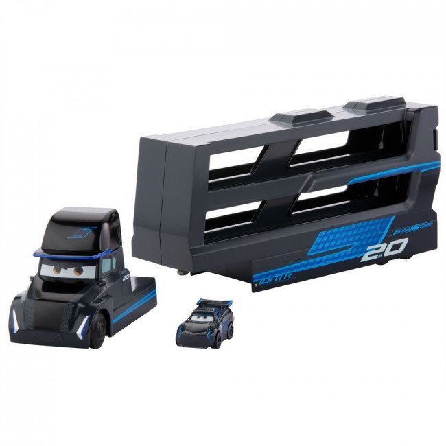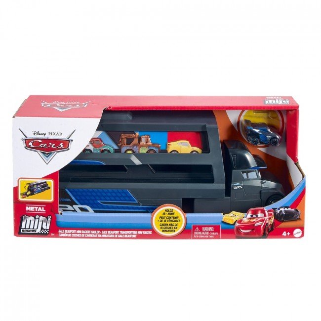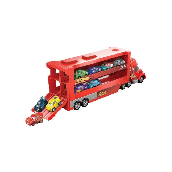 Возьми любимых мини-гонщиков из мультфильма "Тачки" с собой в дорогу, используя крутой грузовик! Выбери одного из двух героев: перевозчика Молнии МакКуина - Мака, или Джексона Шторма - Гала Бофорта. Загрузи до 18 мини-героев в транспортер и отправляйся навстречу приключениям.
