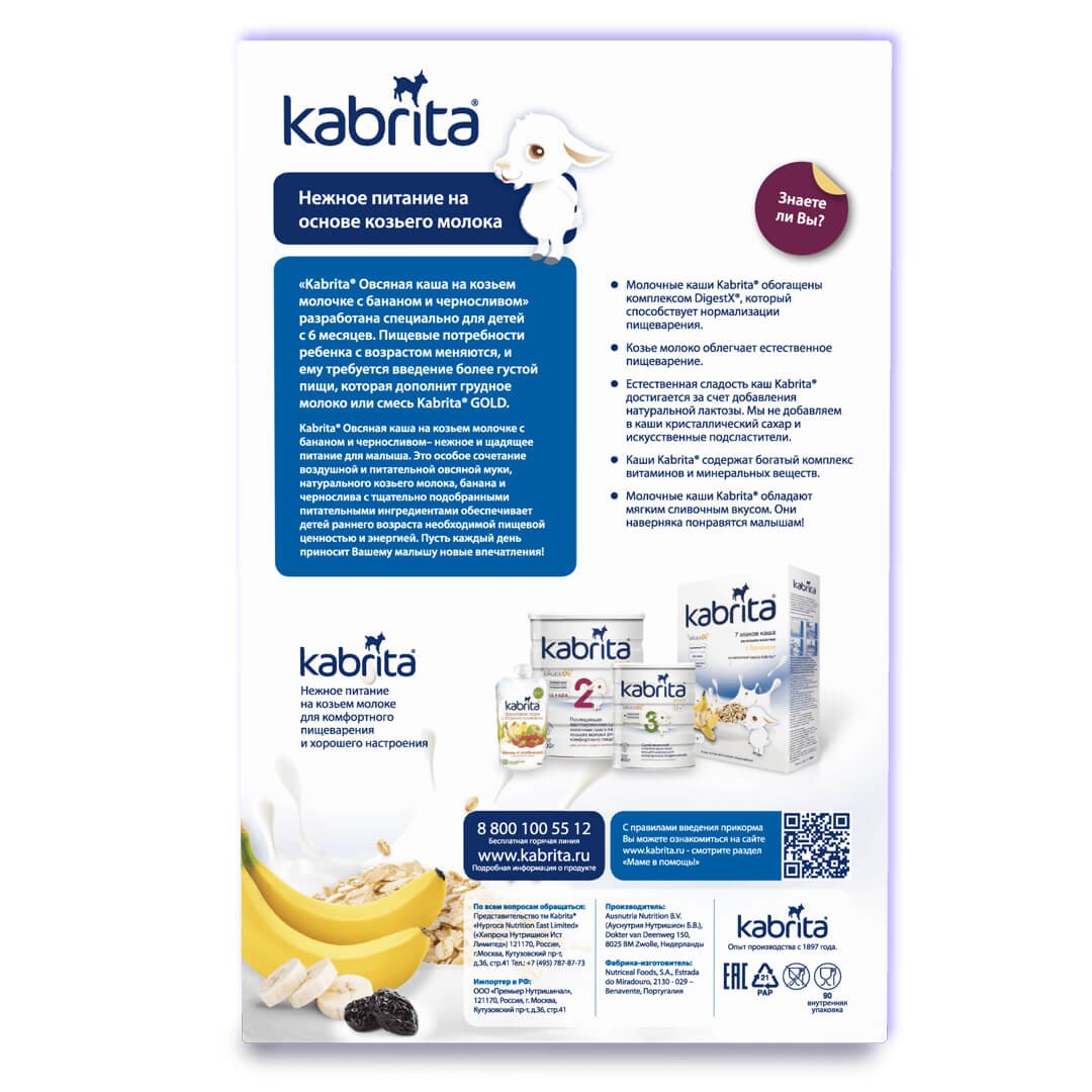 Сухая молочная быстрорастворимая каша с добавлением банана и чернослива, комплекса DigestX, пребиотиков, витаминов и минералов. Подходит для питания детей в возрасте от 6 месяцев - для расширения меню и развития вкусовых привычек. В основе монокомпонентной каши с фруктами - адаптированная смесь Kabrita на натуральном козьем молоке для комфортного пищеварения. DigestX - комплекс жиров с бета-пальмитатом, подобный жировому профилю грудного молока, способствует снижению вероятности запоров, лучшему энергообмену и усвоению кальция. Пребиотики способствуют улучшению пищеварения и укреплению иммунитета. Без сахара. Артикул 797546.