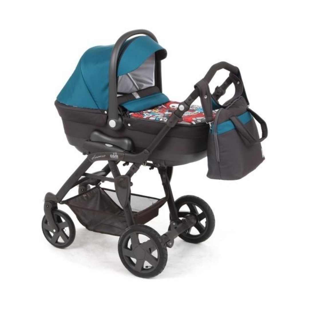 Cam Dinamico Art 3 в 1 - многофункциональная коляска, где есть люлька, прогулочный блок и автокресло. Пластиковая люлька легко ставится и снимается. Есть мягкая обивка внутри, удобная ручка. Высота подголовника и капюшона регулируются. Прогулочный блок размещается по ходу движения и против. Подножка и спинка имеют по 4 положения, раскладываются до горизонтальной позиции. У коляски 5-ти точечные ремни с регулировкой высоты в 2-х положениях. К защитному съемному бамперу прикрепляется регулируемый капюшон. Автокресло для малышей в возрасте до 1 года и весом 0-13 кг размещается против хода. Имеет трехточечные ремни безопасности с накладками на плечи и козырек. Передние полиуретановые колеса вращаются и фиксируются. Задние колеса - резиновые. У коляски центральная система тормозов. В комплект входят: сумка, дождевик, повивальный матрас и чехол на ножки. Модель рекомендована детям до 3,5 лет.